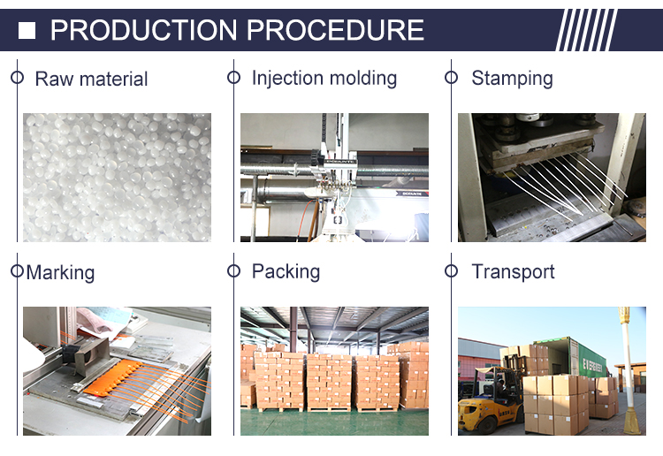 Raw material---mixed material--Injection molding--steel slice installation--Steel slice stamping fixed--printing---packing--delivery